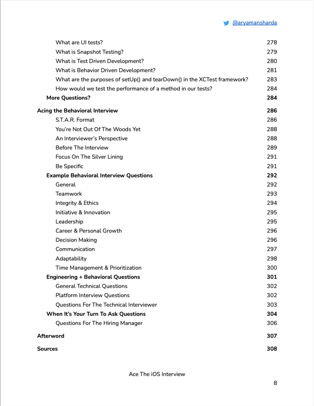 Over the last five years, I’ve been consolidating every relevant question, concept, and take-home assessment I've encountered during my interviews. They are all included in the following pages, along with sample solutions, screenshots, and step-by-step instructions. This book contains everything you need to know for your next iOS interview. “Ace The iOS Interview” will help you take the guesswork out of your interview preparation and will hopefully serve as a practical guide for landing your dream job.